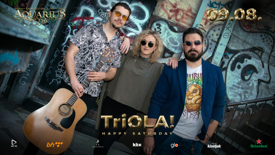 U subotu 09.08. na live scenu Aquarius Vilsa ponovo se vraća TriOLA! bend. Zahvaljujući insistiranju prisutne publike, ovaj bend je već treći put ove godine dobio priliku da napravi atmosferu kojoj bi zavidjeli i znatno poznatiji bendovi. Upravo ta atmosfera očekuje se i u subotu 09. augusta kada će live stage Aquarius Vilsa zauzeti upravo TriOLA! bend.