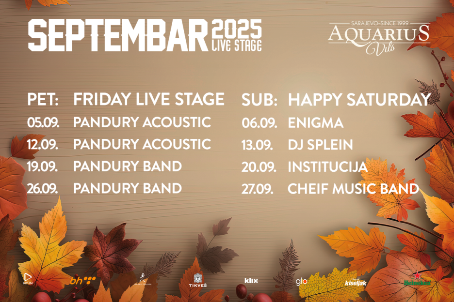 Ukoliko tome dodamo iskusna muzička imena koja će u narednom periodu gostovati u Aquariusu, super atmosferu i odličnu hranu, dobili smo savršeno mjesto za izlazak. U nastavku donosimo kompletan muzički program za septembar mjesec.