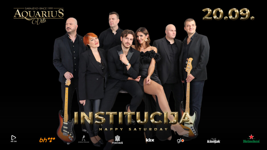 U subotu 20.09. ljubitelje dobrog provoda u Aquarius Vilsu će zabavljati bend Institucija. Dokazani muzički znalci i majstori dobre svirke će i ovaj put zadovoljiti i najzahtjevnije muzičke sladokusce. Subota 20.09. bend Institucija u Aquarius Vilsu.