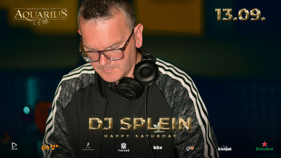 Druga subota u septembru mjesecu 13.09. u sklopu Happy Satruday događaja, u Aquarius Vilsu će nastupiti dobro poznato DJ ime domaće muzičke scene – DJ Splein. Ovaj DJ majstor je dobio povjerenje menadžmenta Aquarius Vilsa te će ovaj put nastupati kao prvo ime muzičke subote. Subota 13.09. DJ Splein u Aquarius Vilsu.